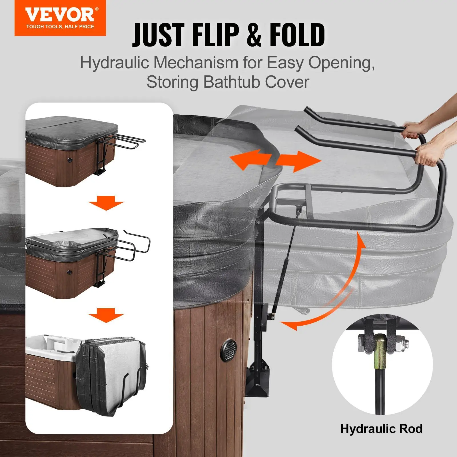 • Easy to Open Hot Tub Cover: Moving your hot tub cover is too much work! This lift with hydraulics allows you to open, store and close your hot tub cover with less effort, all you have to do is flip and fold! It doesn't take up space around your hot tub, making it an excellent choice for homes and spas.