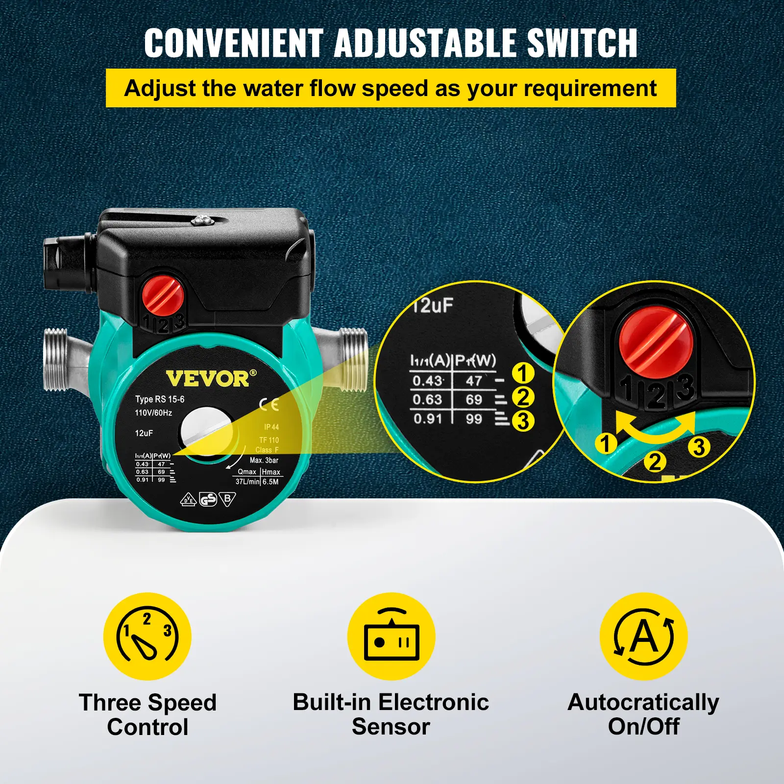 • Adjustable Speed Switch: This water circulator pump features a three-power control switch in 46/67/93W. It is convenient for you to adjust the flow rate as your different requirements.