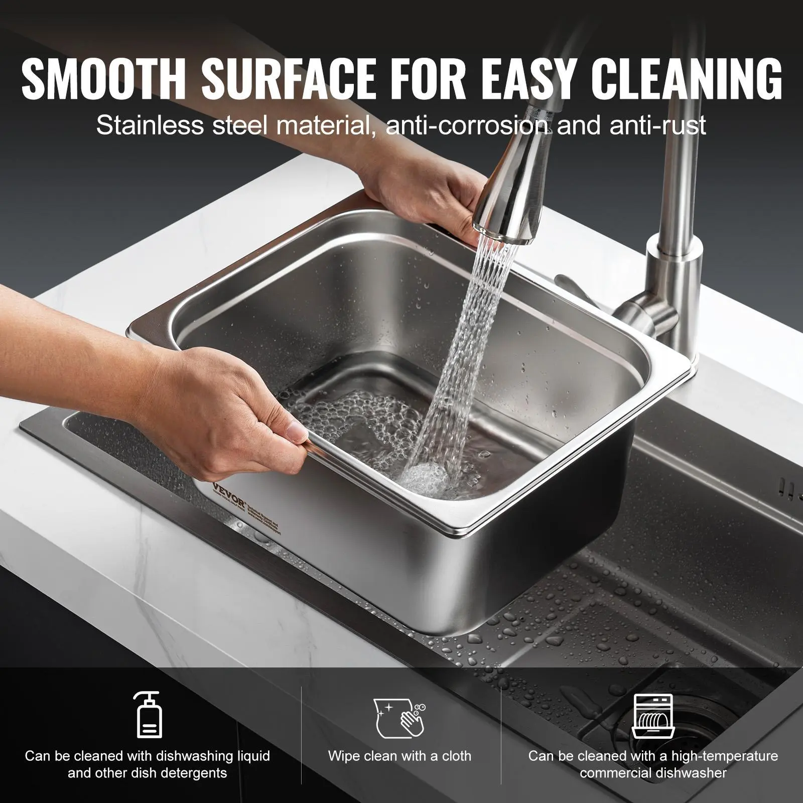 • Sturdy and Durable: Our hotel steam pan is made with 0.8mm thick stainless steel, making them sturdy, durable, and rust-resistant. The unique anti-stacking groove design enhances structural strength, making the pan more robust and easy to separate when stacked.