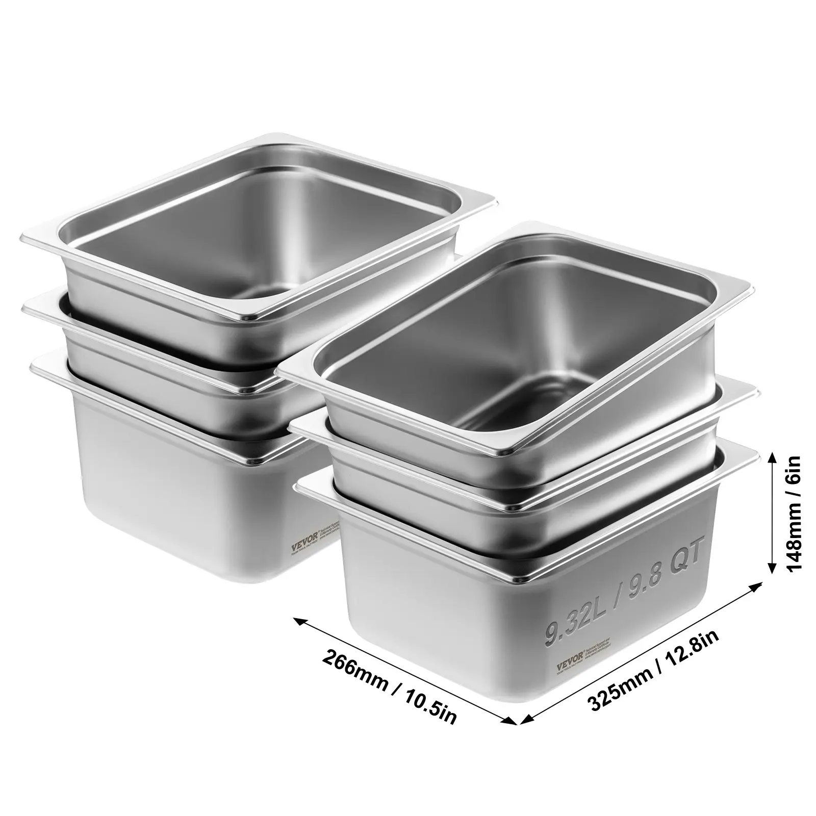 5. VEVOR 6 Pack Hotel Pans, 1/2 Size Anti-Jam Steam Pan, 0.8mm Thick Stainless Steel Restaurant Steam Table Pan, 6-Inch Deep Commercial Table Pan, Catering Storage Food Pan, for Industrial & Scientific Sturdy Kitchen