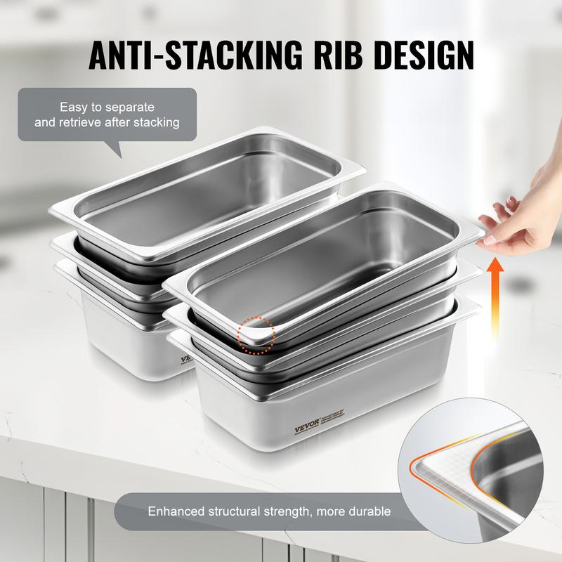 • Sturdy and Durable: Our hotel steam pan is made with 0.8mm thick stainless steel, making them sturdy, durable, and rust-resistant. The unique anti-stacking groove design enhances structural strength, making the pan more robust and easy to separate when stacked.