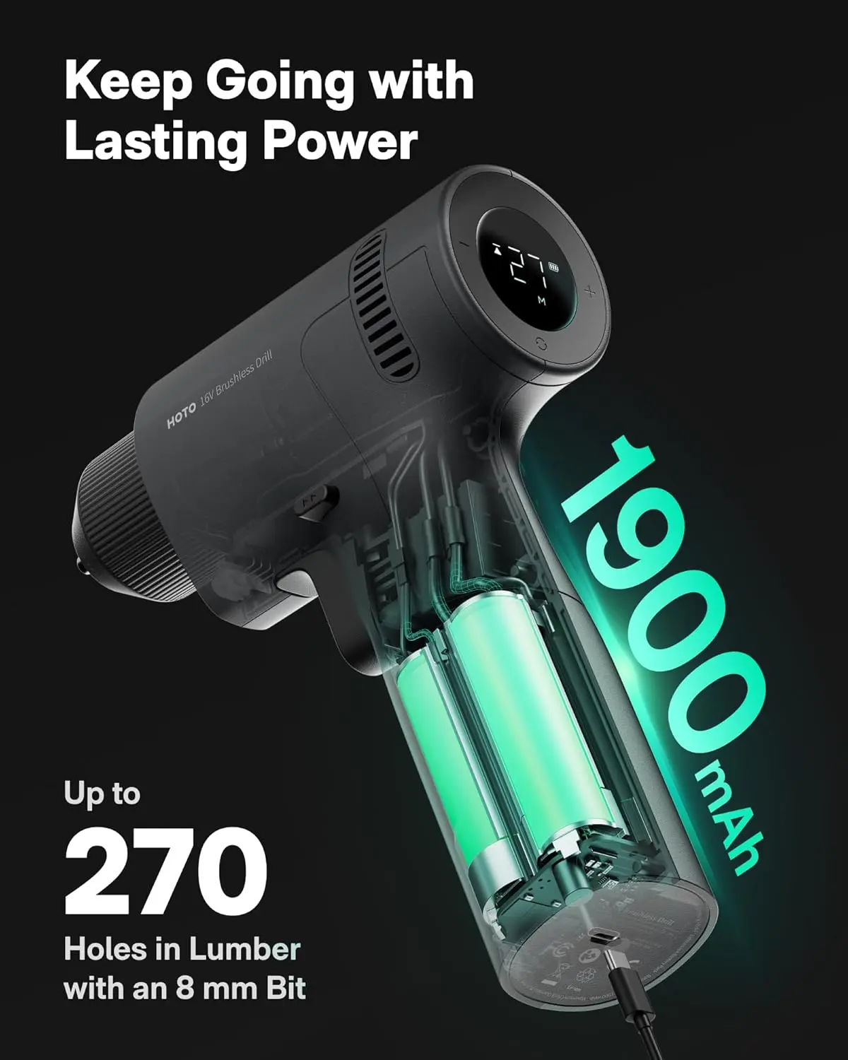 ·Sustained Power for a Stronger Core Drive: 1900mAh Long Runtime, Powerful Brushless Motor, Universal USB-C Charging