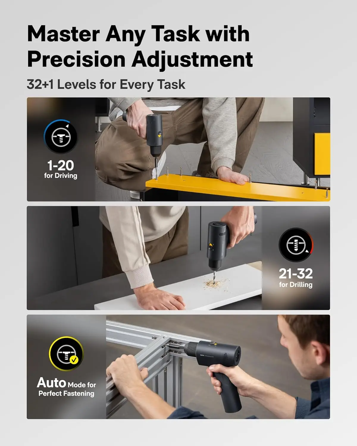 ·Auto Torque Adjustment: Let it Decide, Perfect for Beginners.