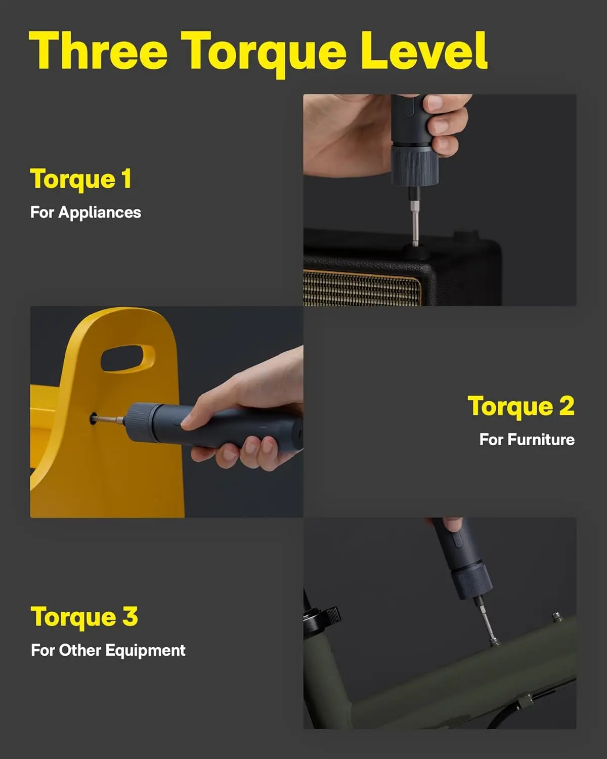·ONE-HAND POWERHOUSE, TOTAL CONTROL - With our mini drill, you get three torque settings in the palm of your hand. (electric mode: max. 4 N·m / manual mode: max. 8 N·m). And that built-in smart sensor? It's your guardian angel. Release the button, the rotation stops—no scratched screws, no injured fingers. Just one hand and you're in complete control!