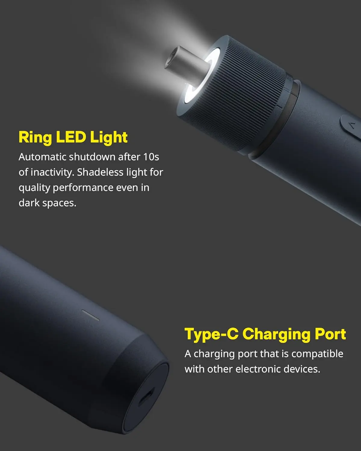 ·CHARGE LESS, SCREW MORE! - This power screwdriver packs a punch with its 1500mAh high-capacity battery. After a rigorous 37-step testing process, it offers insane endurance—driving over 800 screws on a single charge. And when it's time to recharge. Just plug it into a Type-C port, and you're done in under 150 minutes. Super easy, super fast, and efficient!