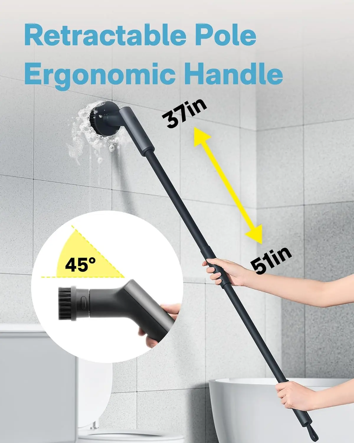 ·Extended Reach and Versatility: Features an extendable handle and 6 interchangeable brush heads for versatile applications.