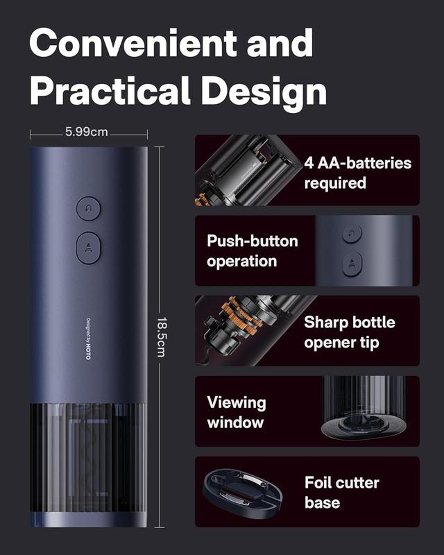 ·Long Battery Life: Enjoy the convenience of uncorking over 170 bottles on a single charge, ensuring uninterrupted enjoyment of your favorite wines.