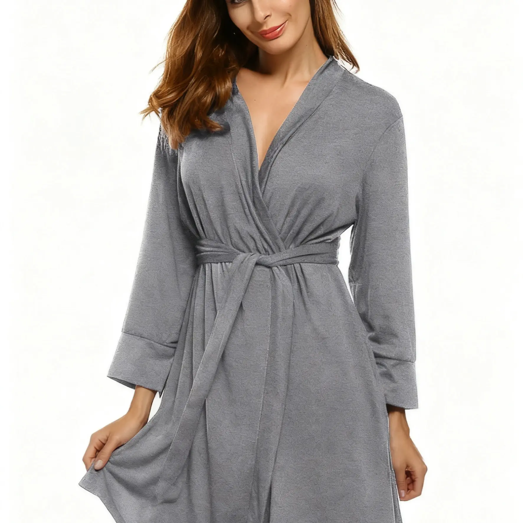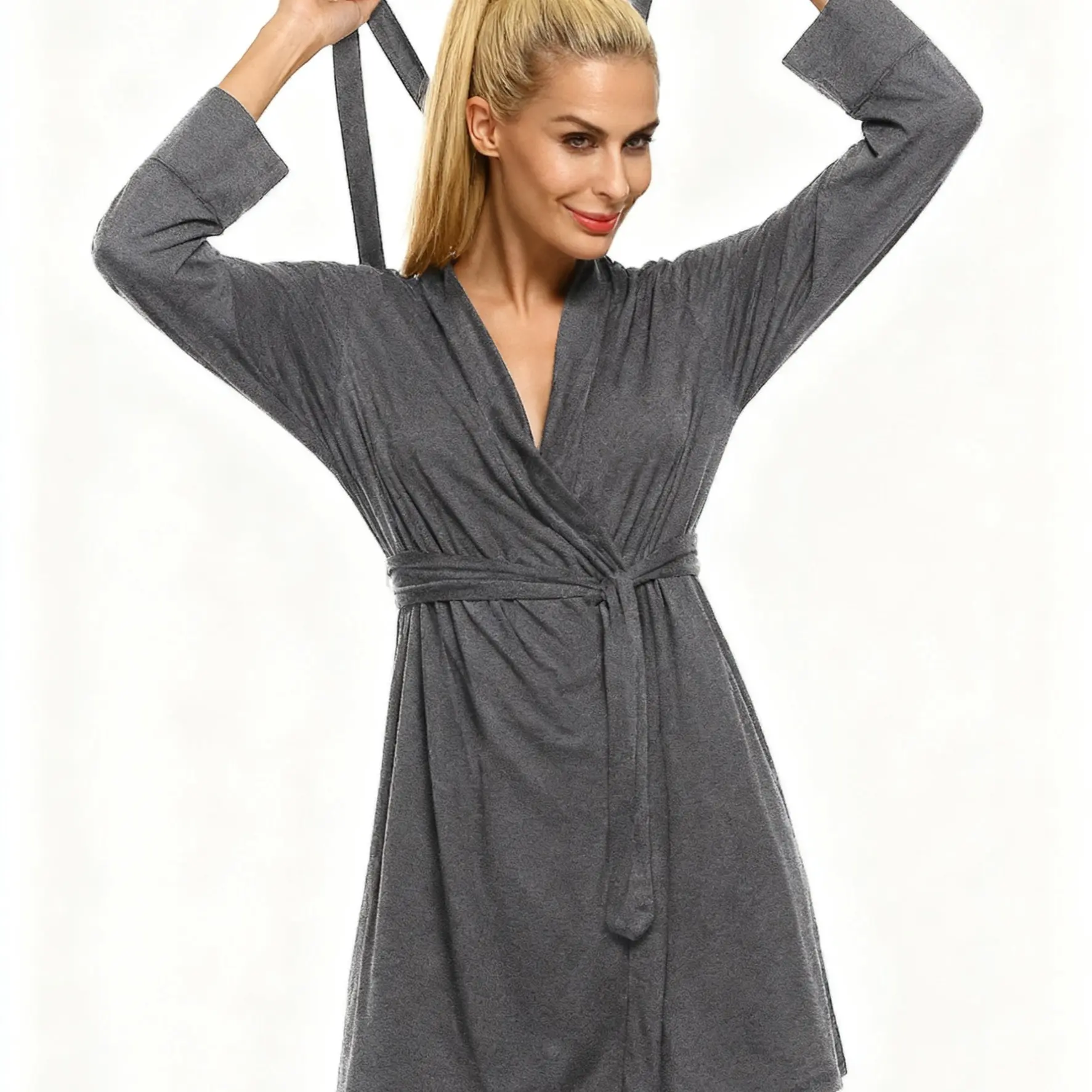 I love this robe. It’s light weight and comfortable. I have the black and the grey.