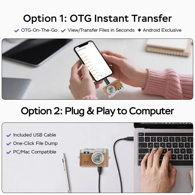 Attach it to a bag, keychain, or pet collar for unique POV videos. Great for hobbies, DIY films, and creative projects. Carry your camera in style with its genuine leather exterior and vintage look. The 32GB card included enhances its functionality for various recording needs. Charge while recording with Type-C.