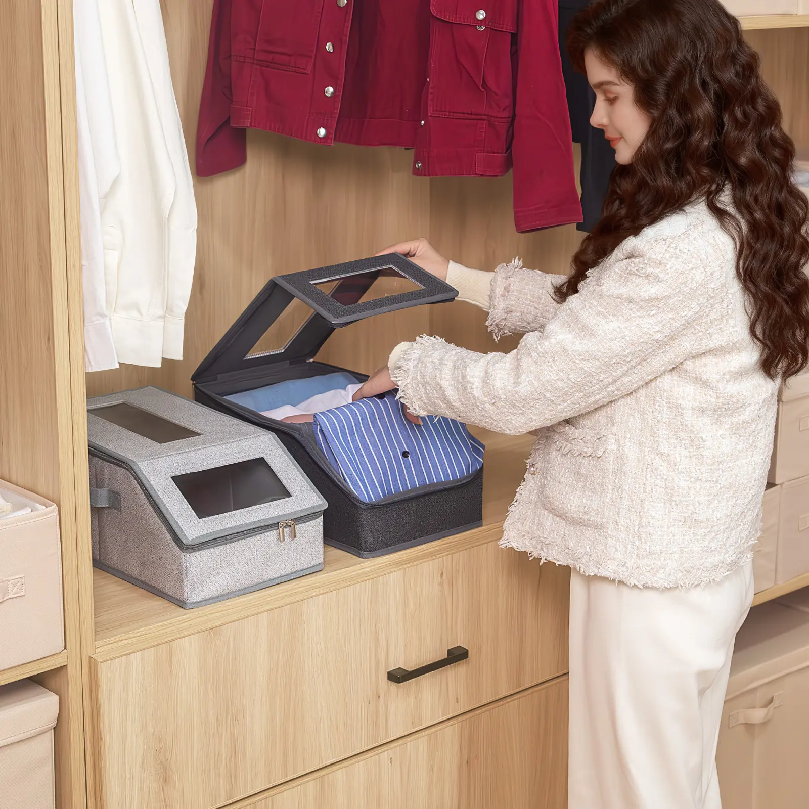 5.【Two Visible windows】The hats bag storage features two transparent windows, allowing you to quickly spot and retrieve your caps at a glance, without needing to open the hat storage compartment. Additionally, when the lid is securely closed, it effectively shields your hats from dust and dirt.