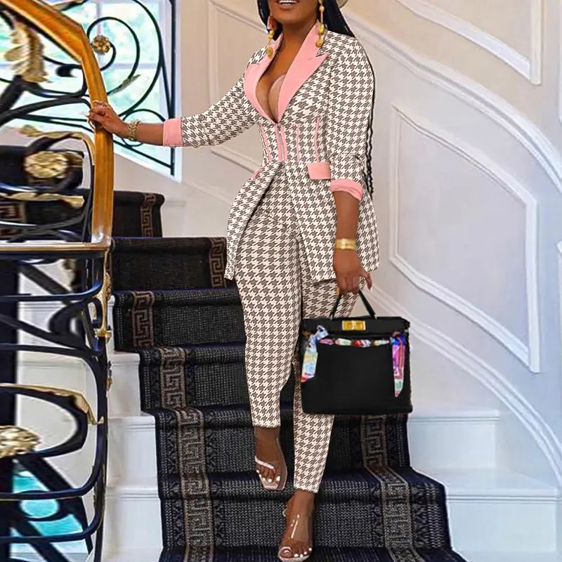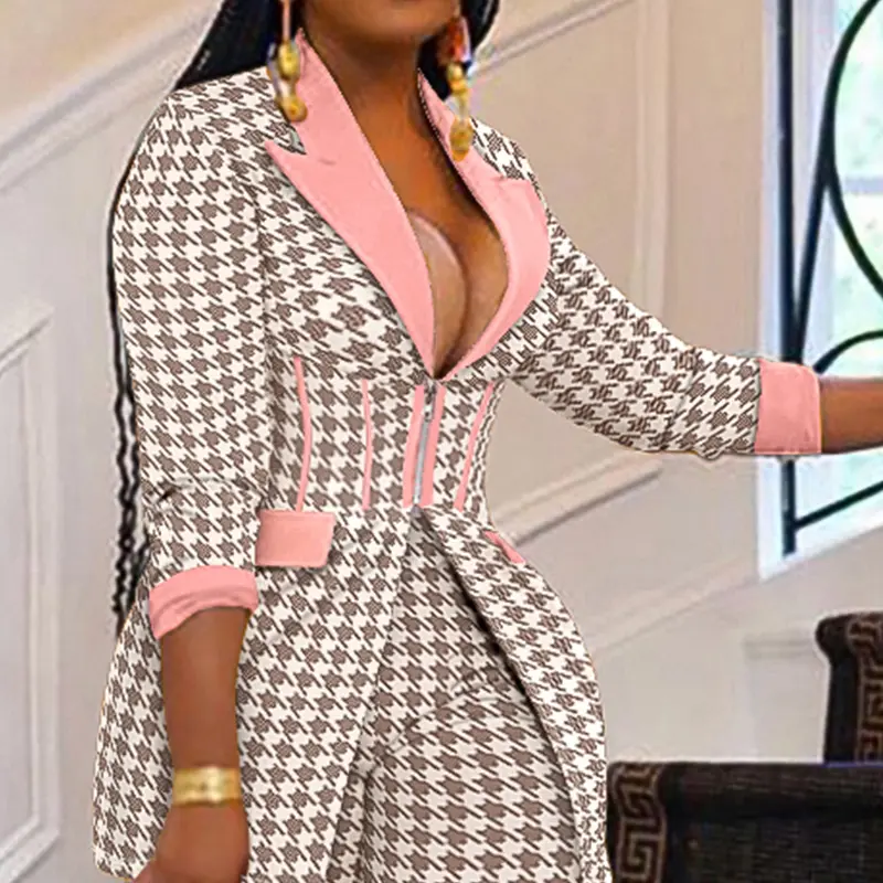 ·Houndstooth print – Classic pattern brings timeless sophistication to this modern blazer set.