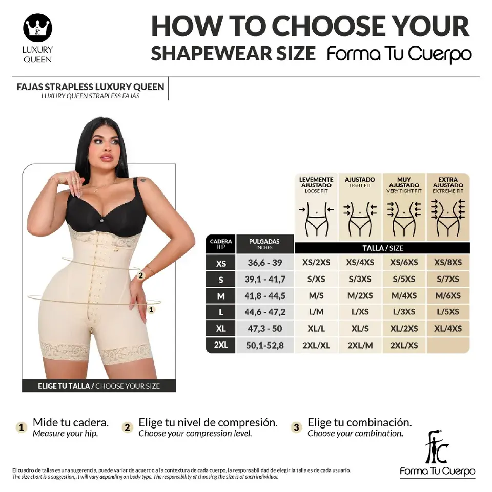 Stylize your silhouette with the Exclusive Luxury Queen Body Shaper. Its unique design allows customization of waist and hips, making you feel like a queen. Ultra-resistant gold-tone clasps in three positions ensure a perfect fit. The abdominal clasp enhances your hourglass shape, making it look smaller. This shaper offers comfort and exclusivity to your voluptuous curves.