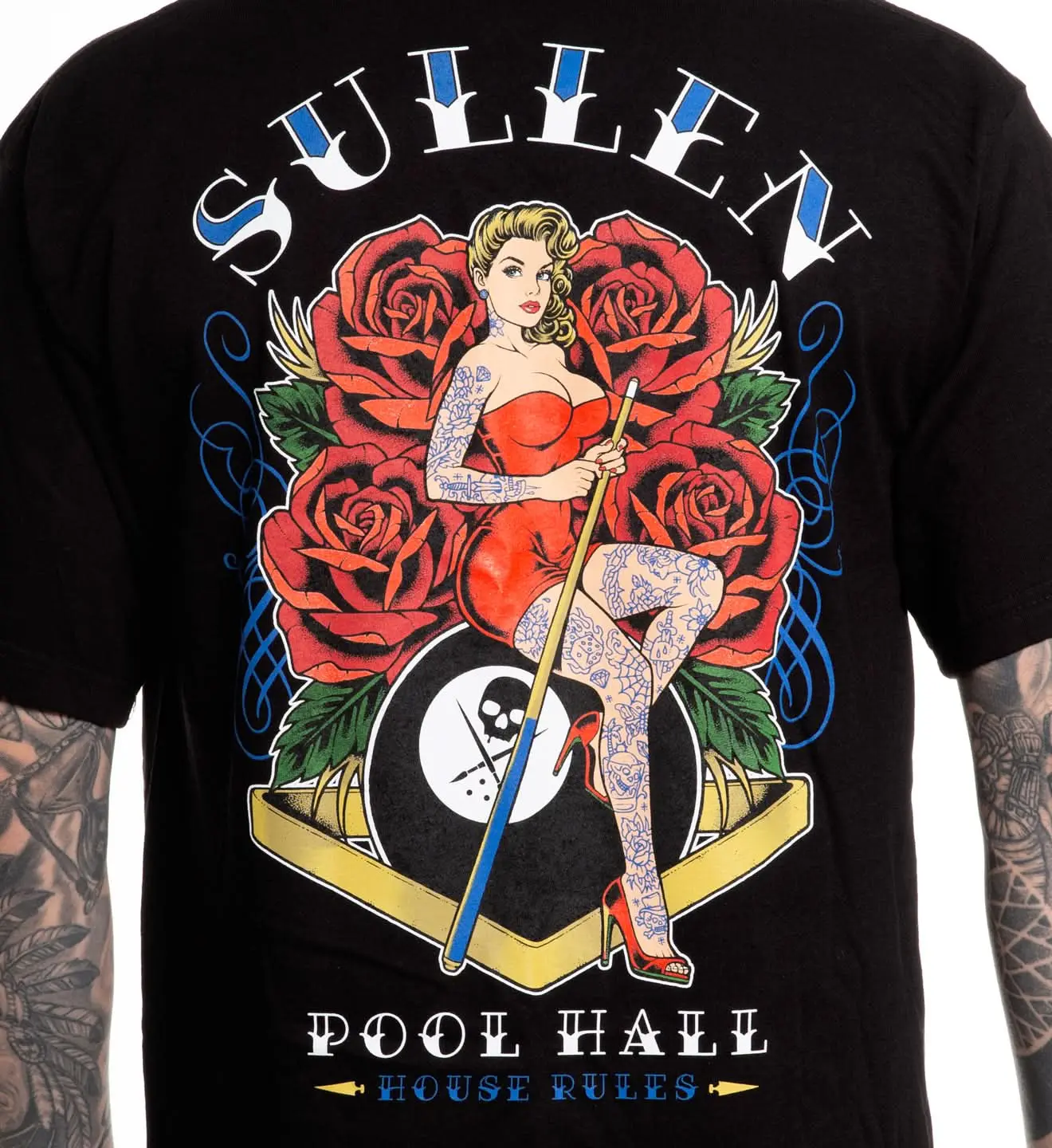 House Rules brings the pool hall pin-up straight onto the back of our black standard tee. As part of our Bar Games capsule, itโ€™s perfect for when youโ€™re running the table or just nursing a drink in the corner.