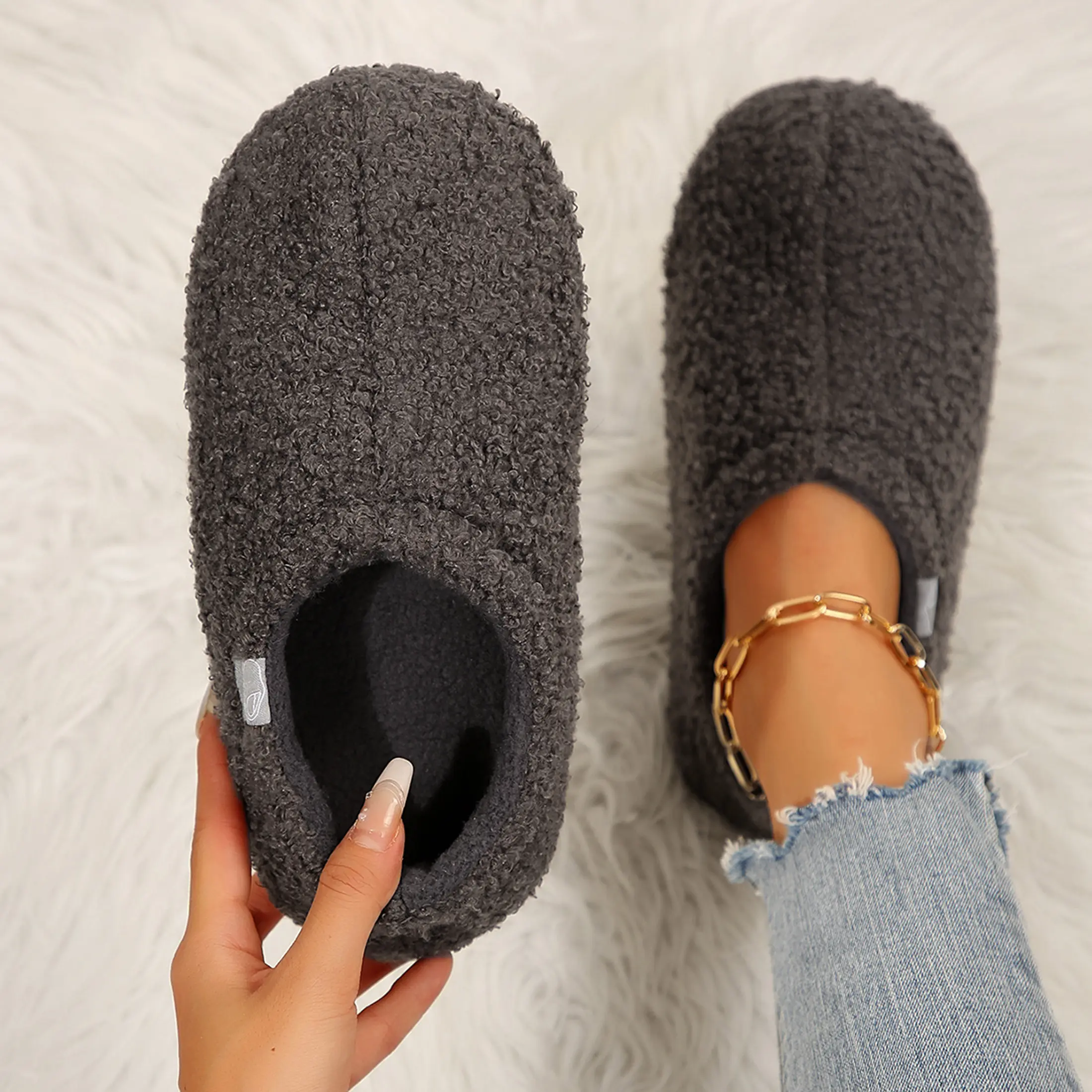 "Crafted with teddy and super soft fleece for indulgent softness, slippers for women indoor offer a cocoon-like embrace for your feet. Slip them on effortlessly with two versatile options: closed back or step-on design, perfect for indoor and outdoor use.