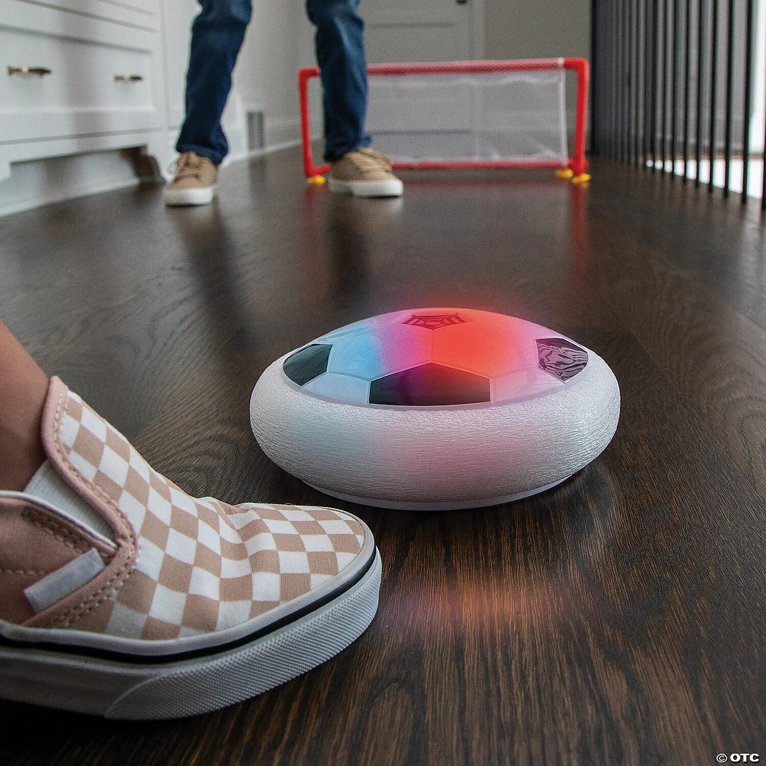 Designed for indoor use, this hover soccer ball floats magically above hardwood, laminate or tile floors, allowing you to kick your way to victory without damaging any household items. Flashing LED lights add an illuminating touch to your game, but no need to worry about batteries; just plug in the convenient USB charger to recharge this smart soccer ball. This unique addition to your indoor games for kids helps get kids moving even if the weather doesn’t allow for outdoor play. Two sturdy nets let you play with a friend or go solo as you master your scoring technique. Take your soccer skills to the next level with this cutting-edge indoor soccer ball!