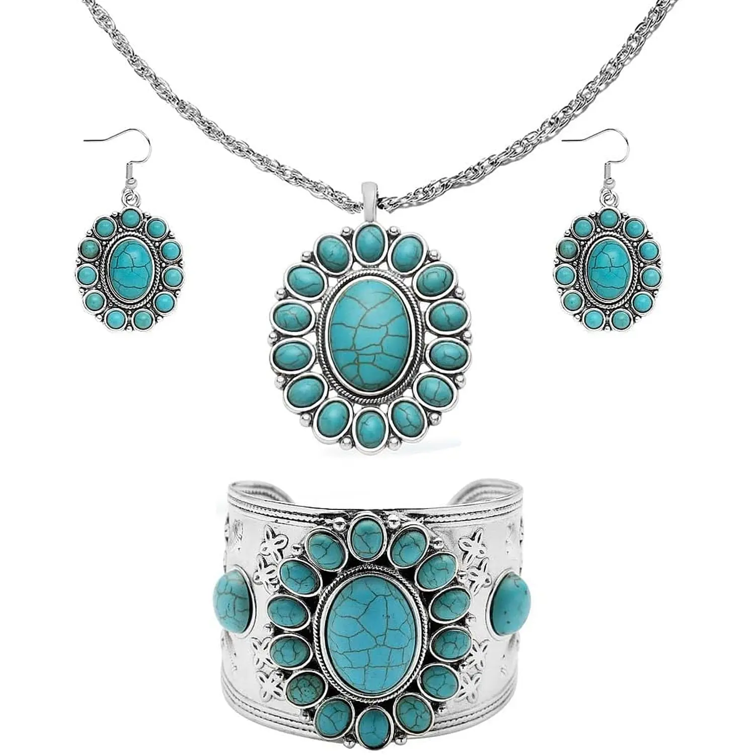 Shop LC Howlite Jewelry Sets for Women - Turquoise Inspired Western Cowgirl Accessories - Statement Beach Boho Necklace Earrings & Cuff #jewelry #sets #for #women #paratiiiiiiiiiiiiiiiiiiiiiiiiiiiiiii