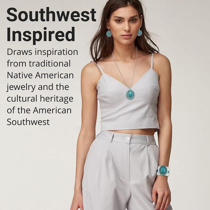 5. Howlite Jewelry Sets for Women - Turquoise Inspired Western Cowgirl Accessories - Statement Summer Beach Boho Necklace Earrings & Cuff Bracelet Set - Costume Jewelry Anniversary Christmas Gifts