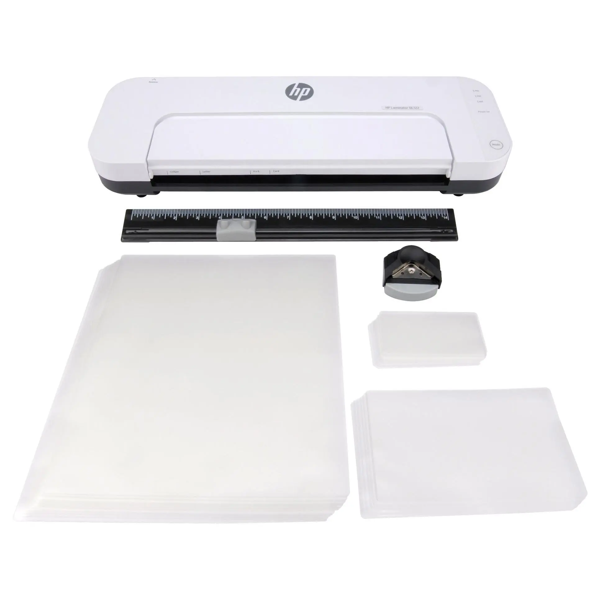·Includes QL122 laminator, 30-piece starter kit with 10 letter size, 10 4x6 size, and 10 business cards, paper trimmer, and corner cutter