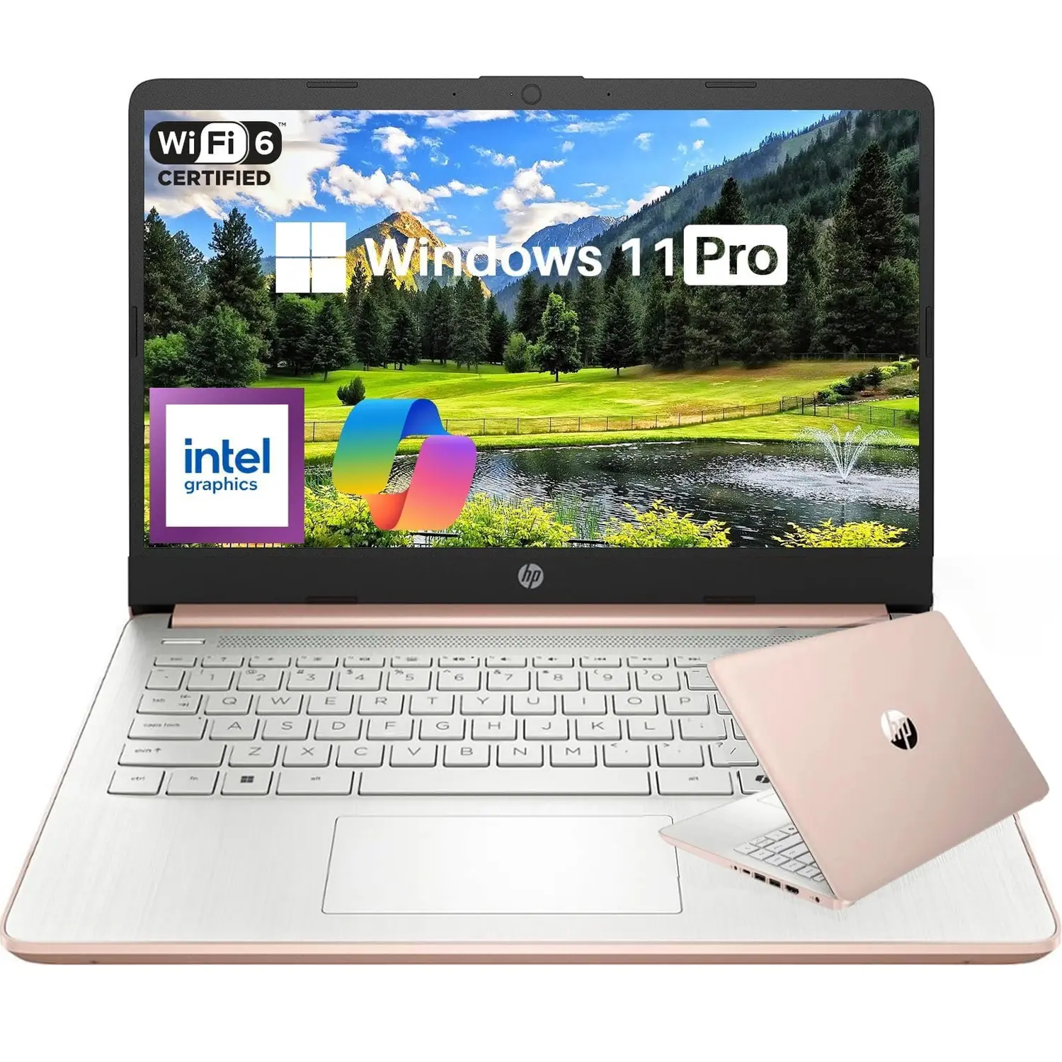 5. HP 14" Laptop Student Business Computer - 2025 New Version, Intel N150 Processor, Windows 11 Pro, Copilot AI, 12Hr Battery, up to 16GB RAM 384GB Storage (128GB UFS+256GB MSD) ,Rose Gold