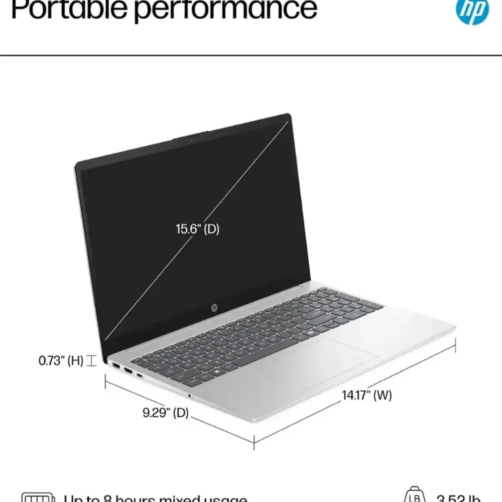 ·【Slim, Lightweight & Built for Mobility】Weighing just 3.52 lbs and only 0.73" thin, this laptop computer is easy to carry wherever you go. The long-lasting battery supports up to 480 Min. of use, while HP Fast Charge technology gets you back to 50% in just 45 minutes—ideal for on-the-go professionals and students.