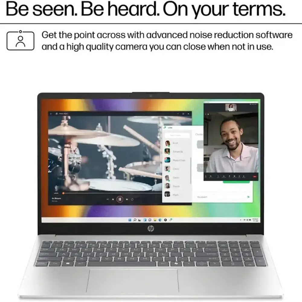 ·【 Bright HD Display with HD Webcam】Enjoy vibrant visuals on a 15.6" HD BrightView display (1366×768) with micro-edge bezels for a modern look. The integrated HP True Vision 720p HD webcam and digital mic ensure crystal-clear video calls—great for virtual meetings, online classes, and hybrid work environments.