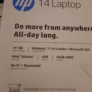 Windows 11 Pro Get all the features of Windows 11 Home operating system plus Mobile device management, Group Policy, Enterprise State Roaming, Assigned Access, Dynamic Provisioningm, Windows Update for Business, Kiosk mode, and Active Directory. Quad-core Intel Celeron processor Handle multitasking reliably with the perfect combination of performance, power consumption, and value. Intel UHD Graphics Smoothly stream 4K content and play your favorite games. 128GB eMMC+256GB Micro SD Card storage An embedded multimedia card provides reliable flash-based storage. Micro-edge display With virtually no bezel encircling the display, an ultra-wide viewing experience provides for seamless multi-monitor set-ups. HP Fast Charge Go from 0 to 50% charge in approximately 45 minutes.¹ Wi-Fi 5 (2x2) and Bluetooth 5 wireless card Stay connected to Wi-Fi and to Bluetooth accessories with wireless technology. Dual array microphones With two microphones and advanced noise reduction technology, you'll always sound crystal clear when you video chat or record. HP True Vision HD Camera Video chat with vibrant clarity, even in low light. Sleek design Easily take this thin and light PC from room to room or on the road. Screen to body ratio Revolutionize your display and see more of what you love with this slim bezel design. Enjoy an immersive multimedia experience with a maximized viewing area. Make the most out of your 365: Bring your ideas to life.
