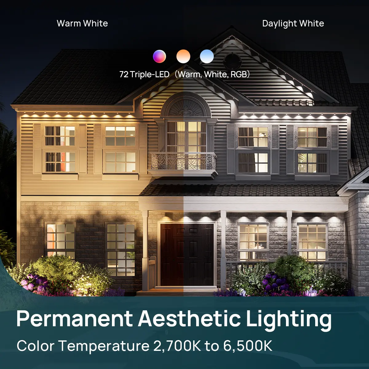 I bought these to test as a potential whole-house outdoor lighting solution, but for now, they’re perfect on my pool deck. Installation was hassle-free—the 3M tape is surprisingly sticky, so I didn’t even need the screws. Aligning them manually took a bit of time, but that’s not the product’s fault—all lights stayed put, no falling off. The lights themselves are high-quality: super flexible brightness and color options, perfect for setting the mood on the patio. Price matches quality, great for anyone wanting to spruce up a specific outdoor area!