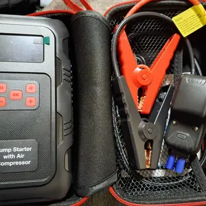 About this item·【6000A Jump Start Battery Pack】The 24,000mAh jump starter is equipped with a peak current of 6000A, enabling it to start 12V vehicles (10L gasoline/8.0L diesel engine, including hybrid power) in just 3 seconds. Even in low temperatures (-20°F to 70°F),【Built-In Smart Air Compressor】Smart preset & auto shut-off without repeated adjustment and check. It provide maximum pressure of 150 PSI and airflow of 10L/Min! It can be used for Car, Bicycle, Motorcycle, Basketball, Pool Toys using. DOES NOT SUPPORT heavy duty truck tires.·【4-IN-1 Multi-Function】Not only a car battery booster, a Tire Pumper, but also a portable power bank, a LED flashlight. Support fast charging/USB 3.0, adapt smart phones, tablets and other USB devices. Input:5V/9V, Output:12V/2A. The integrated 300-lumen LED flashlight has 4 lighting modes, constant lighting, flash and SOS,Warning.·【Smart Cordless Inflator with LCD Display】The car jumper starter supports smart preset & auto shut-off without repeated adjustment and check. With unique turbocharged 8L/Min (150 PSI) lasting 6 minutes, jump starter provides fast and proper inflation to various tires, balls, etc. Friendly design with real-time data reading, detachable extended air hose and 3 optional unit switching for covenience.·【WHAT YOU GET】 1 x Smart Air Pump, 1 x Air Tube(60cm/23.6in), 1 x Inflating Needle, 1 x Inflatable Nozzle, 1 x Pesta Valve, 1 x Emergency Start Power Clip, 1 x Type C Cable, 1 x User Manual.