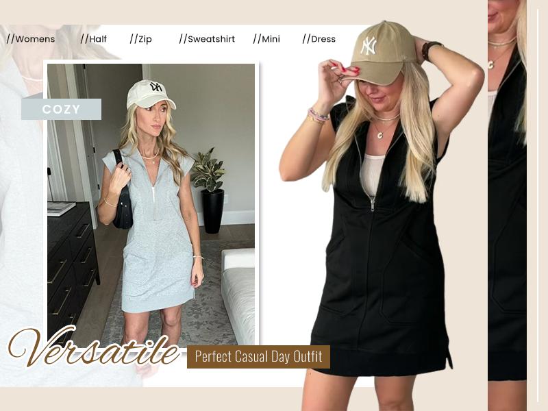 Ā·Casual half zip sweatshirt dress, made of soft and lightweight fabric, super comfy to wear