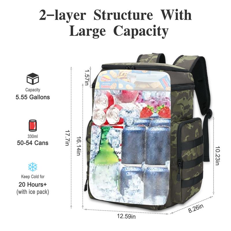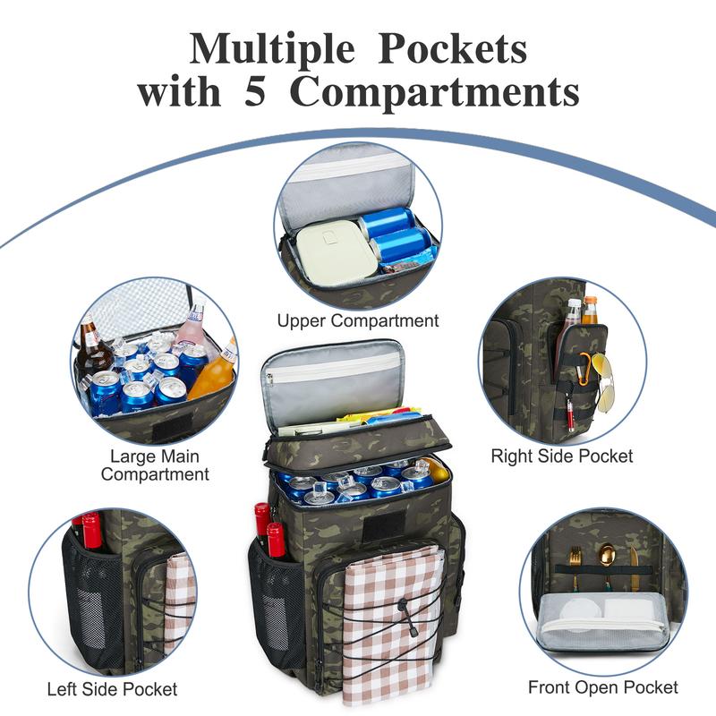 HSHRISH CAMO Cooler Backpack with 5 Compartments for Drinks & Snacks Ideal for Beach & Gamedays Cold All Day Performance Versatile Practical Storage