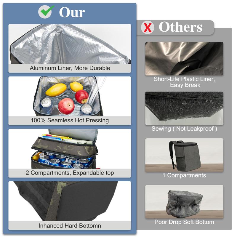 This backpack ensures cold performance all day. Whether you're at the beach or at a game, your drinks and snacks will stay chilled. Stay refreshed and comfortable throughout your day. 🧊❄️