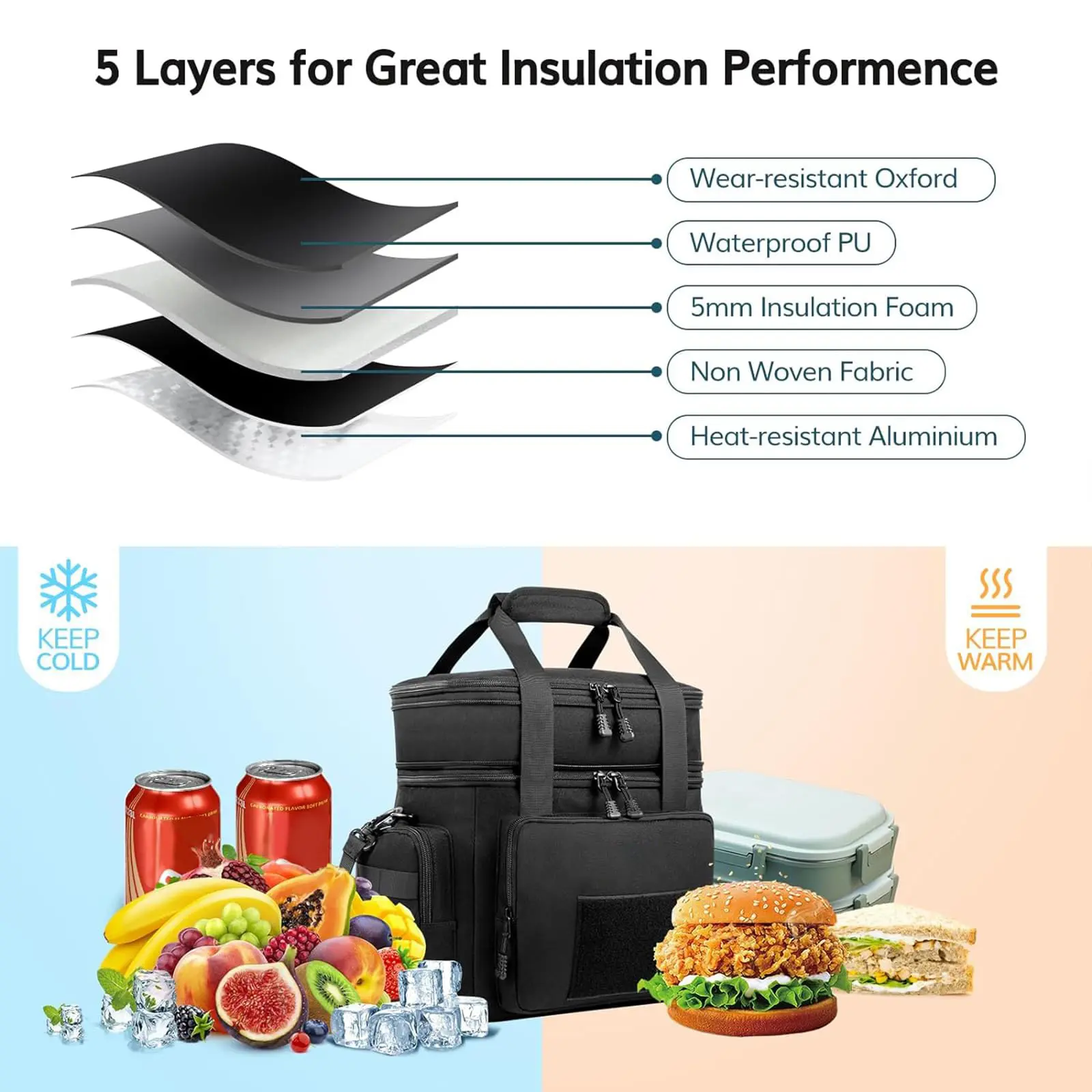 Double layer insulation keeps your food fresh and at the desired temperature. 🍽️