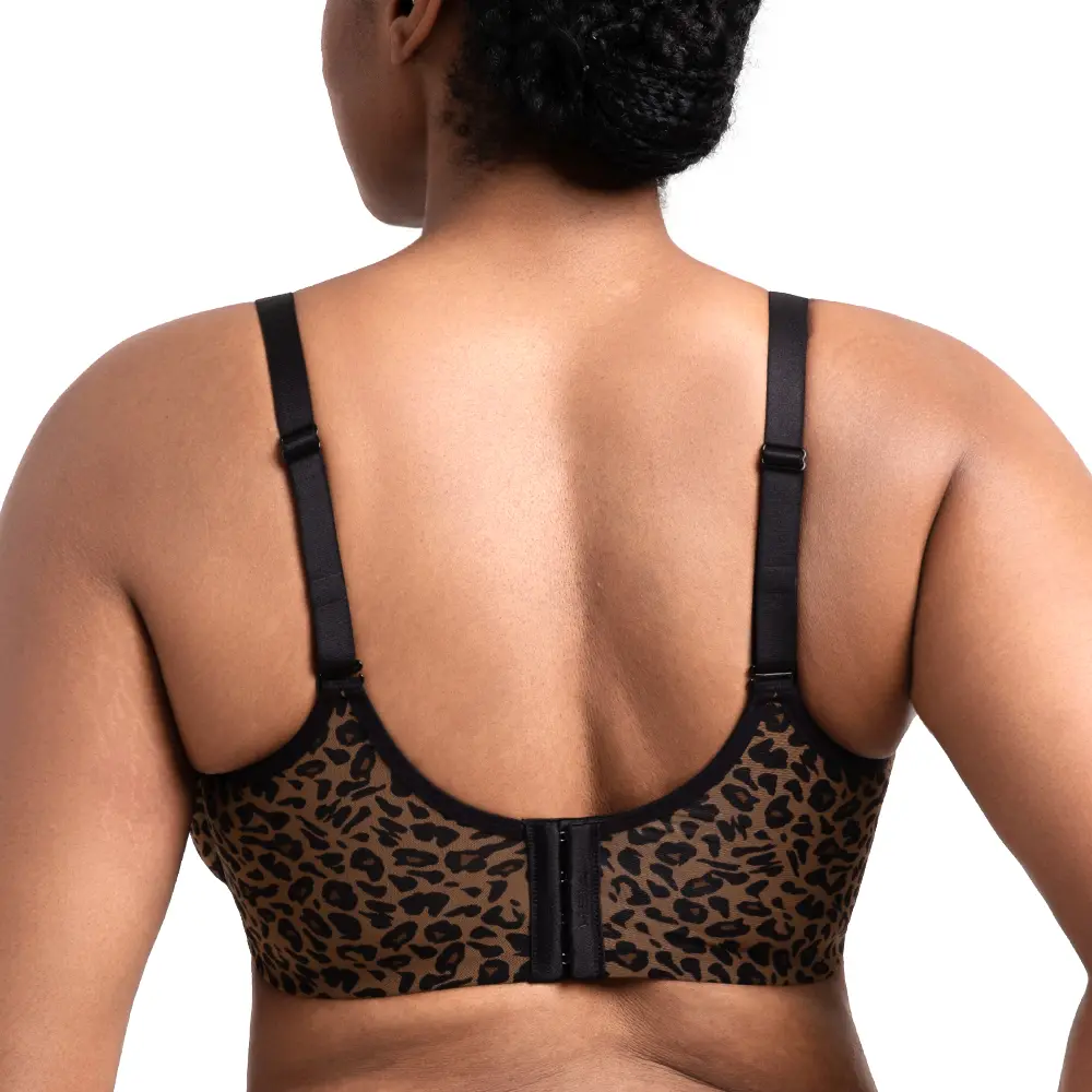 Embrace the perfect fusion of untamed style and unparalleled comfort. Designed specifically for women with fuller busts, our leopard print mesh bra is here to revolutionize your lingerie drawer. The fashion-forward, unlined design offers a natural silhouette, while its engineered features—from the breathable fabric to the secure underwire—provide the support you need to feel confident and comfortable all day long. Step into a bra that's as fierce and free as you are.
