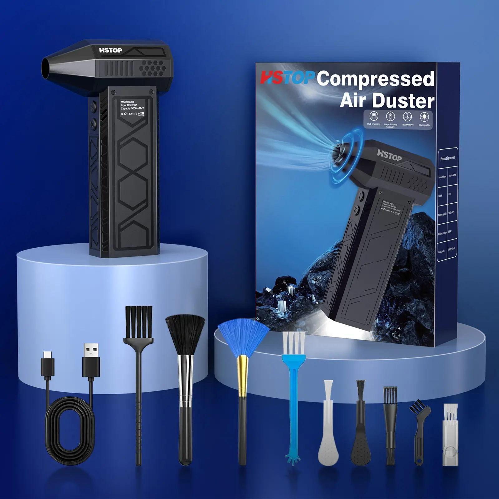 Ever struggled with stubborn dust in tight spots or outdoor gear? Meet your new cleaning sidekick! This electric air duster packs a punch with 4 adjustable wind speeds to blast away dirt from keyboards, printers, leaves, and even snow. Plus, it doubles as a handy flashlight with direct, flash, and SOS modes—perfect for camping trips or emergencies. Powered by a robust 10,000mAh rechargeable battery, it charges quickly via USB Type-C, so you're never left powerless. The lightweight, compact design means you can easily carry it anywhere—from your desk to the great outdoors. Inside the box, you'll find the air duster itself plus 9 versatile brush accessories to tackle every cleaning task with ease. Upgrade your cleaning game with this multifunctional tool that’s as handy as it is powerful. Ready to breeze through your chores and outdoor adventures? Grab yours today and experience the turbo fan difference!