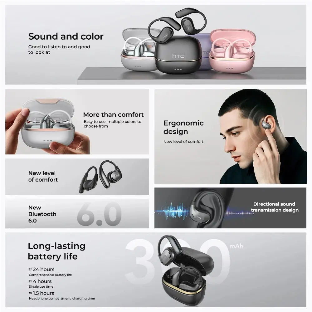 Discover the HTC AI Headphones, featuring 134 language translation and Bluetooth 6.0 dual mode switching. Enjoy HD clear calls and IPX5 waterproof protection. The HIFI sound quality ensures an immersive audio experience. With long battery life and comfortable wear, these earbuds are perfect for daily use. Contact customer service for any issues.