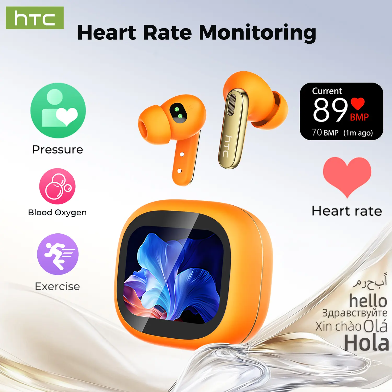 HTC Earbuds Wireless Earbuds, Bluetooth 6.0 Earphones, Heart Rate Monitoring Earbuds, Sports Headphones With Microphones, LED Display High Fidelity, Suitable for Office, Sports, Study and Audio Calls, Active Noise Cancellation
