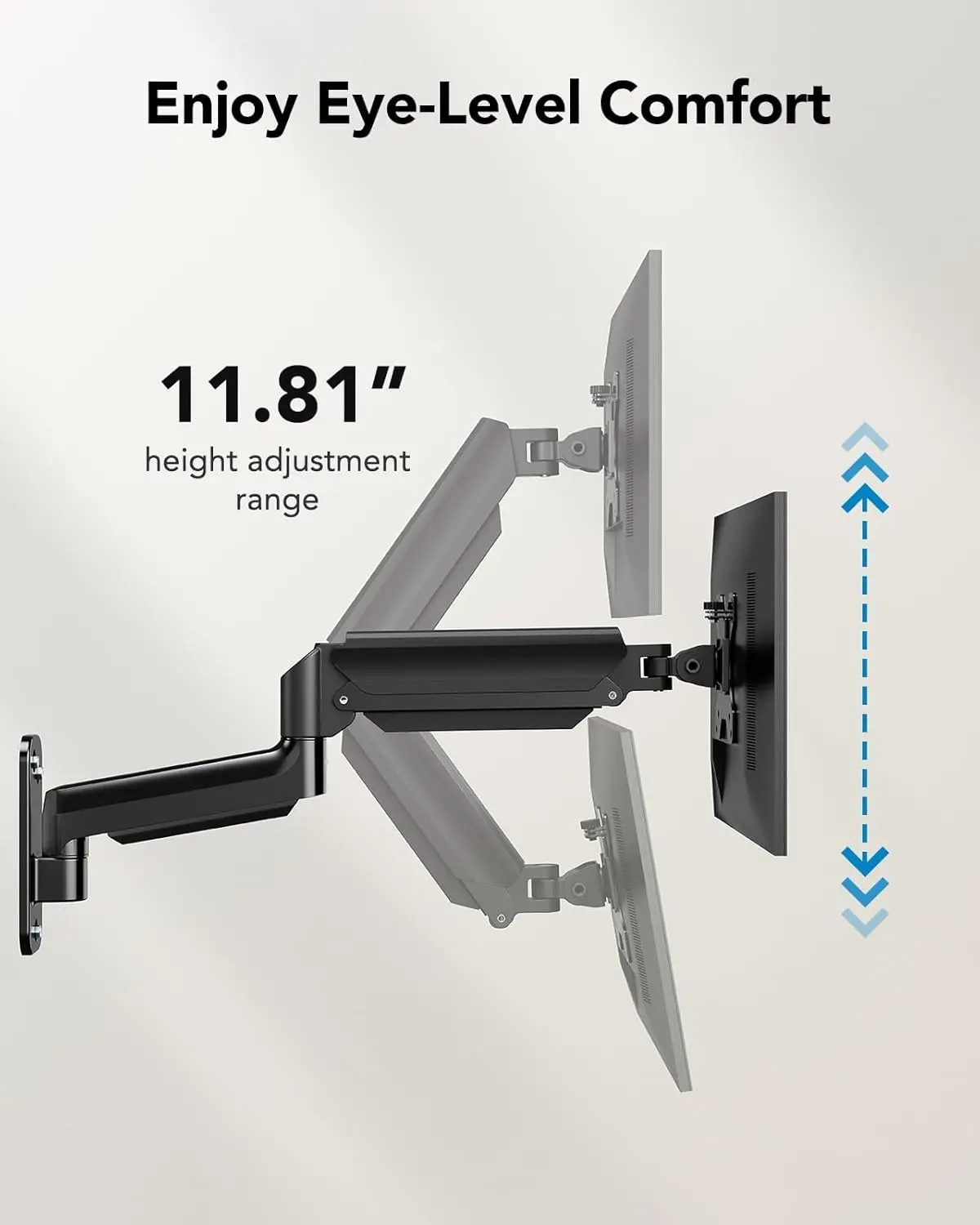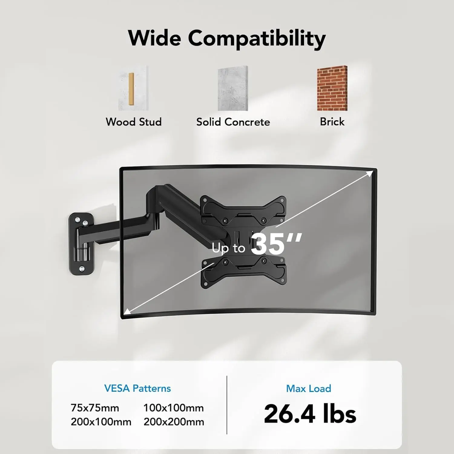 5. HUANUO Computer Monitor Wall Mount for 17 to 35 inch Flat Curved Screens, Single Wall Monitor Mount Holds up to 26.4lbs, Height Adjustable Full Motion Gas Springcore Vesa Wall Mount, Max 200x200mm#TikTokShopBlackFriday