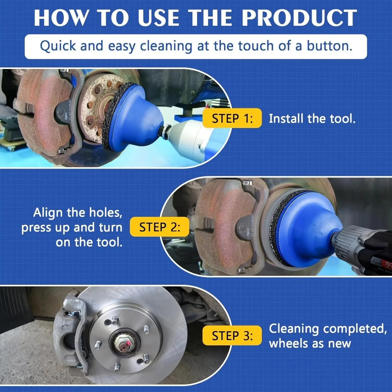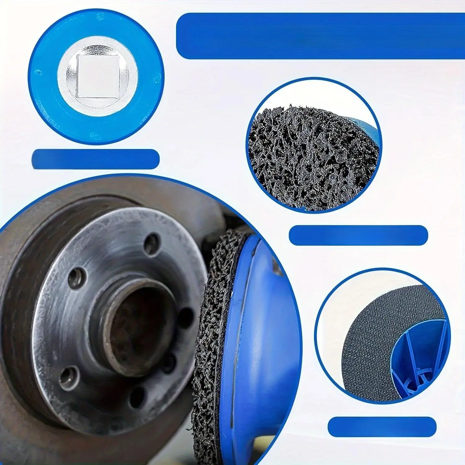 Hub and brake disc cleaning and polishing: including replaceable polishing pads, suitable for rust removal and polishing.