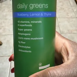Water, Soluble Chicory Root Fiber, Citric Acid, Potassium Citrate, Cucumber Juice, Kale Puree, Spinach Juice Concentrate, Natural Blueberry Lemon Thyme Flavor with other Natural Flavors, Natural Flavor, Monocalcium Phosphate, Calcium Lactate Gluconate, Fruit Juice (Color), Broccoli Puree, Magnesium Oxide, L-Ascorbic Acid, Organic KSM-66 Ashwagandha (Organic KSM-66 Ashwagandha Root Extract, Natural Flavor), Choline L-Bitartrate, Lion’s Mane Mushroom Powder, Stevia Leaf Extract (Reb MD), Green Tea Extract, D-alpha Tocopherol Acetate, Micronised Iron Phosphate, Niacinamide, Retinyl Acetate, Strawberry Juice Concentrate, Sour Cherry Juice Concentrate, Red Raspberry Juice Concentrate, Apple Juice Concentrate, Carrot Juice Concentrate, Cranberry Juice Concentrate, Blueberry Juice Concentrate, Sodium Selenite, Menaquinone-7, Calcium D-Pantothenate, Ergocalciferol, Cholecalciferol, D-Biotin, Folic Acid, Cyanocobalamin, Pyridoxine Hydrochloride, Phylloquinone, Thiamine Mononitrate, Potassium Iodide, Zinc Oxide, Sodium Molybdate, Manganese Sulfate, Chromium Picolinate