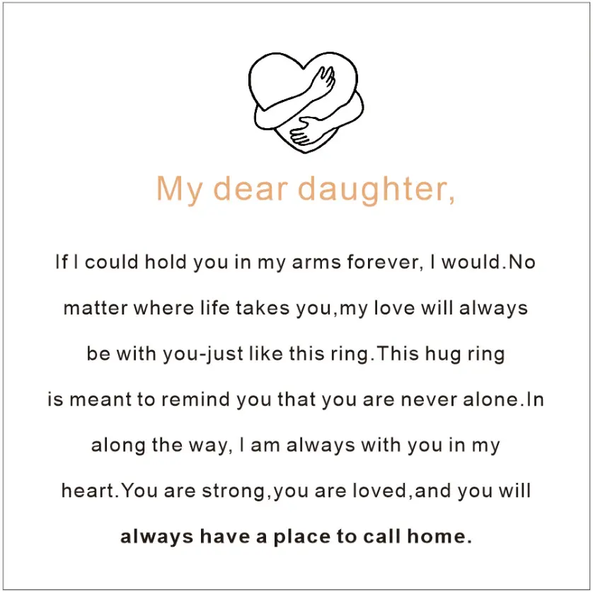 Hug Ring for Daughter : A hug symbolizes comfort, encouragement, love, and protection. Engraved on the ring are words like "I love you forever" and "Together with you forever." Give this hug ring a unique meaning and give your loved one a hug.
