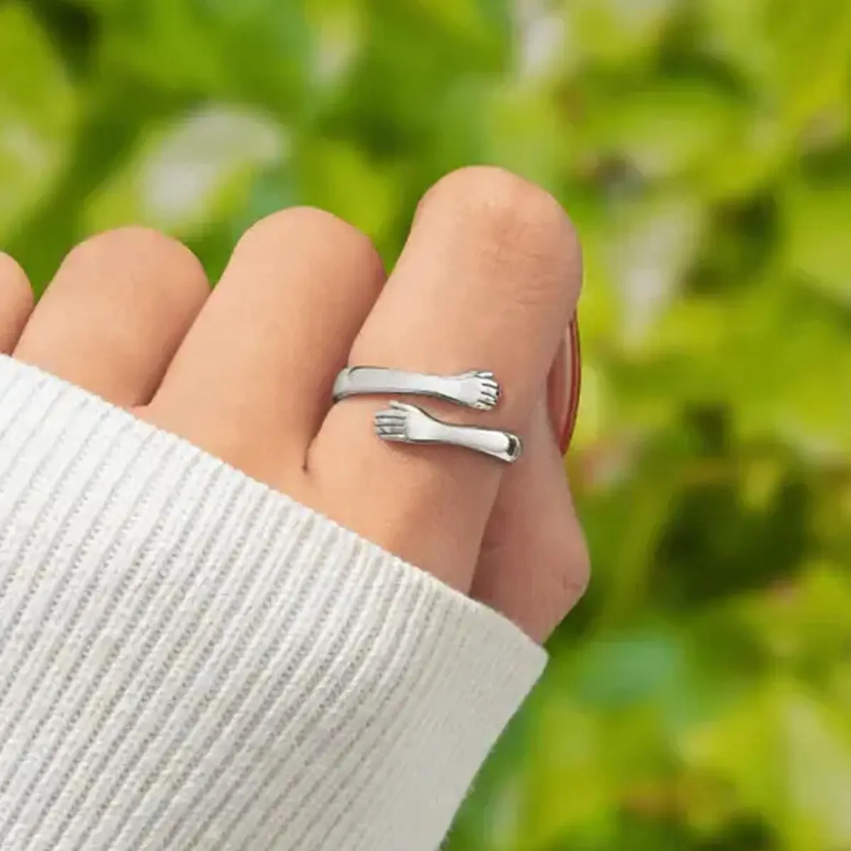 Ring: This hug ring is made of lead-free, nickel-free, and hypoallergenic metal, with a sophisticated polish and plating process that resists fading and is comfortable to wear.