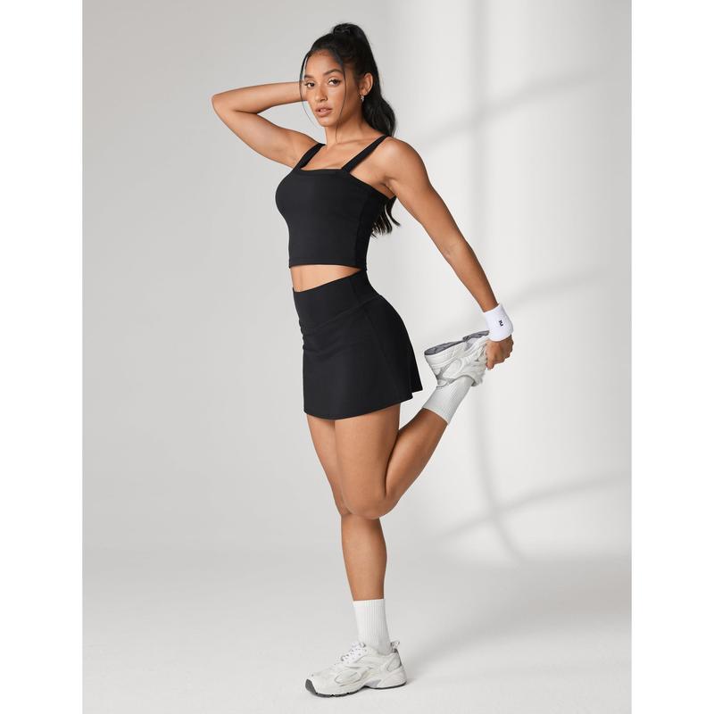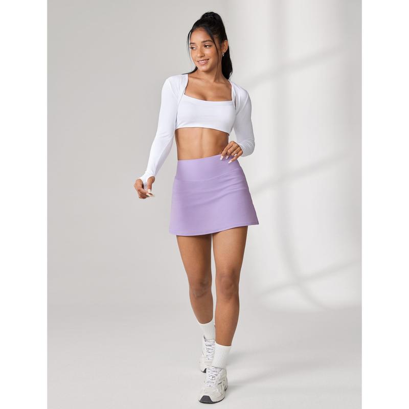 Ā·Lightweight skirt with breathable built-in shorts for full coverage and flexibility.