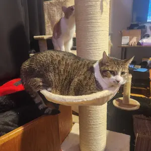 10/10 no notes from my cat she absolutely freakin loves this thing. If your cat likes high places to perch herself on & likes to streeeeeeetch when she scratches, this cat scratcher is for you. Easy to put together, came in four parts in a medium sized box. The only thing I’d caution for some cat parents is if your cat gets wigged out by unstable/wobbly cat towers then this might not be for you. I can’t tighten the bolts any more & it does wiggle a fair amount when she bounds up the side of it haha. My cat doesn’t care about that so she still loves it :)