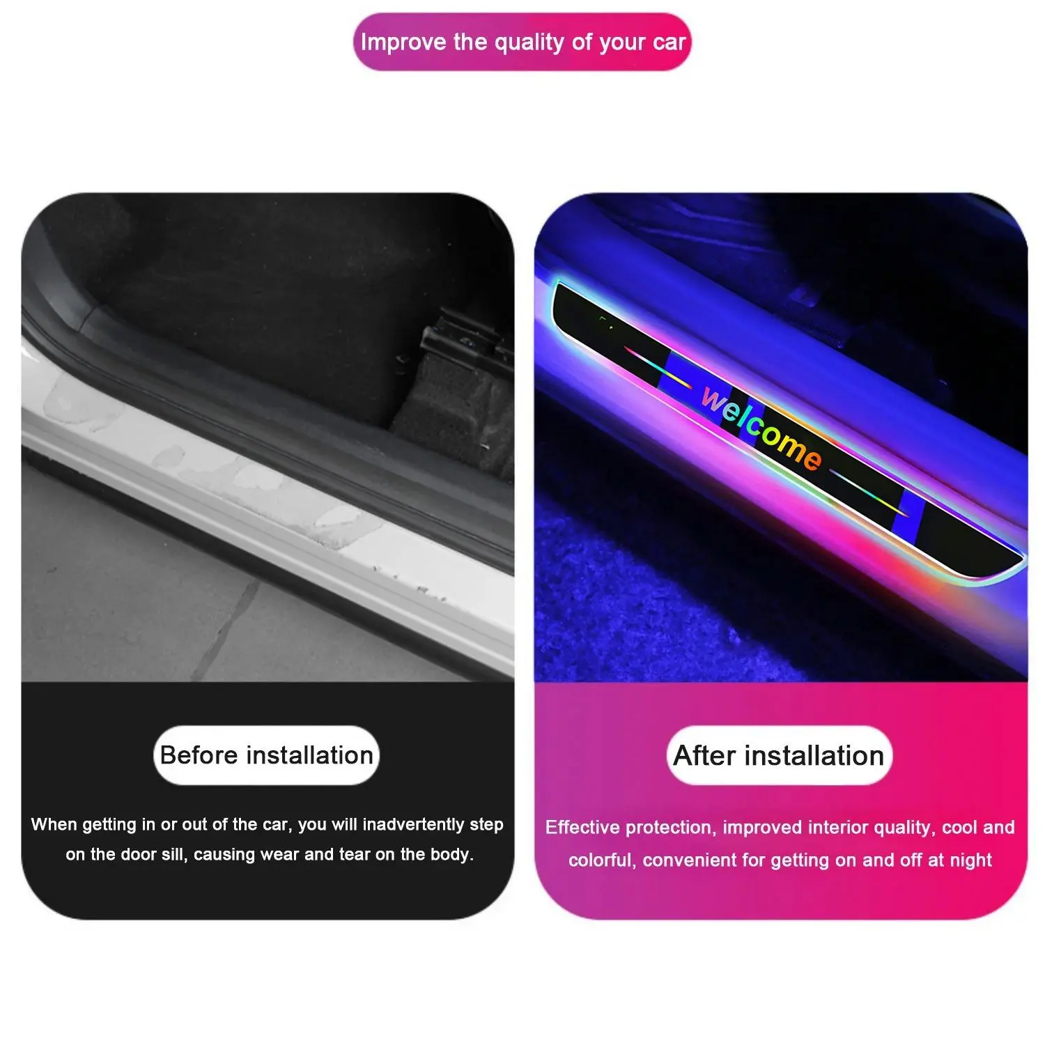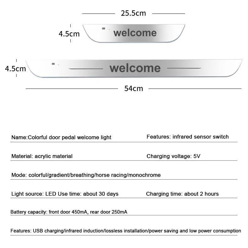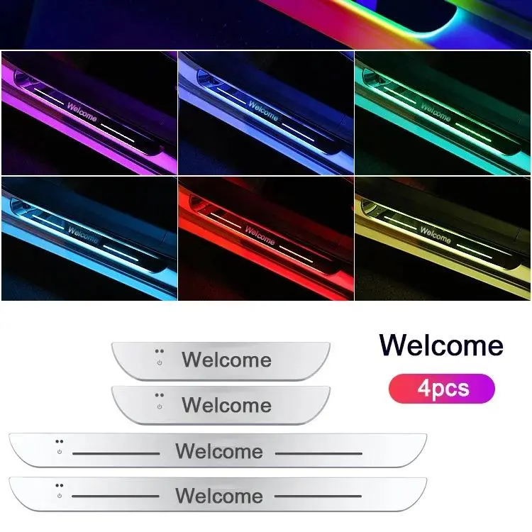 Colorful 4PCS RGB Car Door Sill Lights | Sensor + USB Recharge | Colorful Welcome Pedal