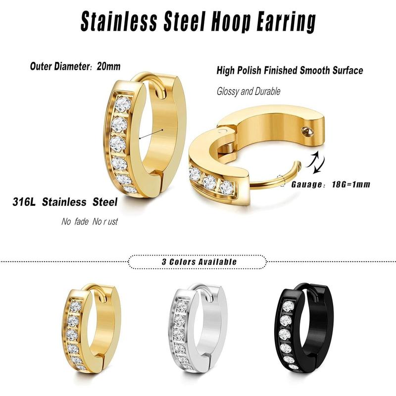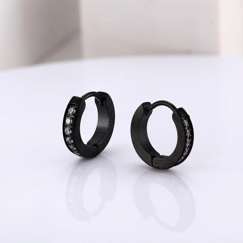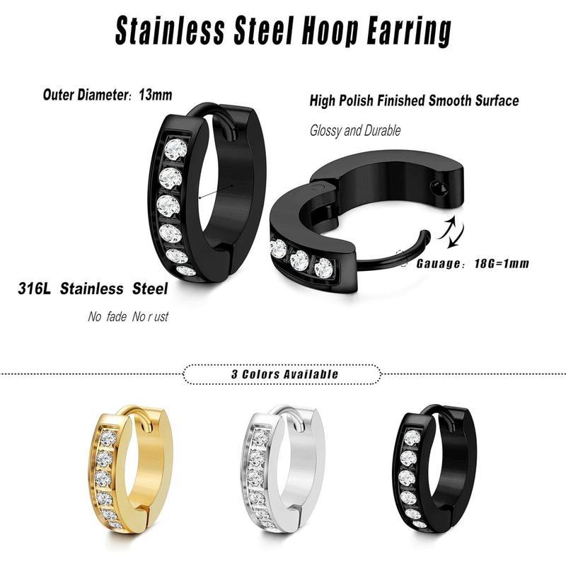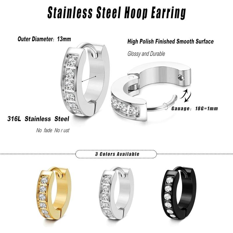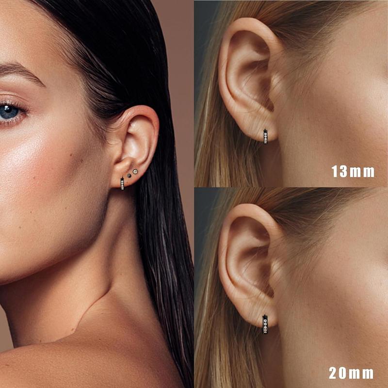 Cassieca 13MM 20MM Stainless Steel Small Hoop Earrings for Men Women Huggie Earrings CZ Inlaid Daily