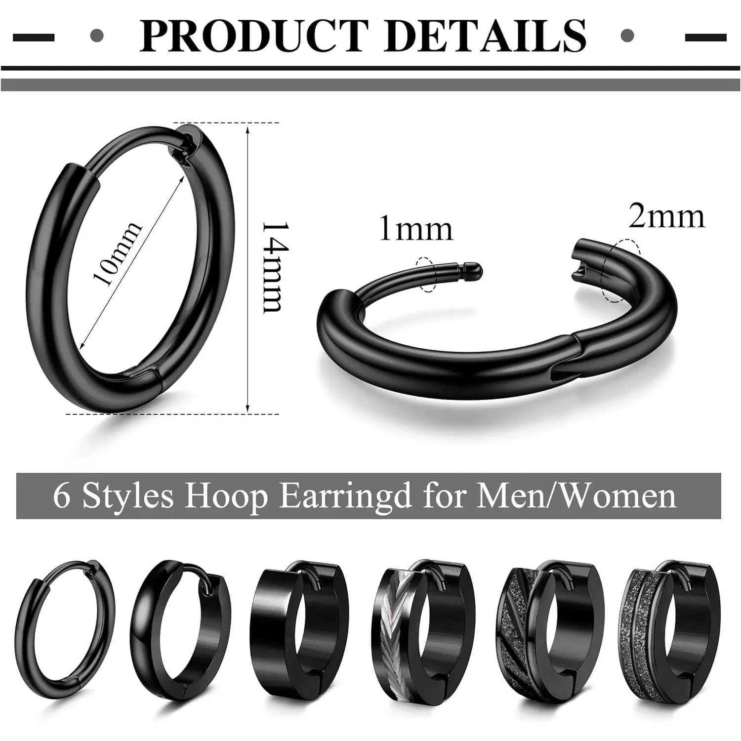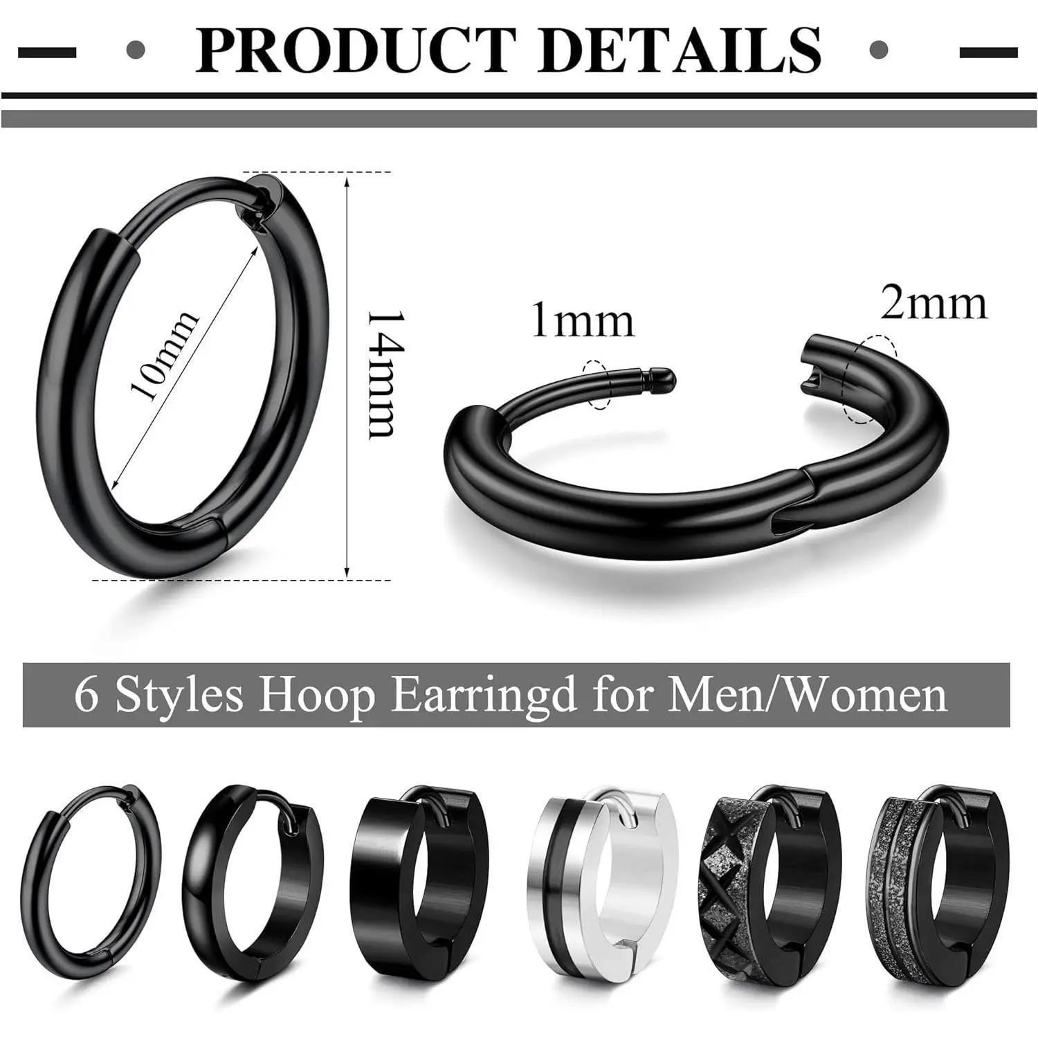 【Mens Hoop Earrings】1 order you will get 6 pairs huggie hoop earrings in different styles. Small hoop earrings are full of personality and cool, suitable for men and women. Multistyle hoop earrings have multiple choices, meet your different daily wearing need, show your charm and get more compliments.