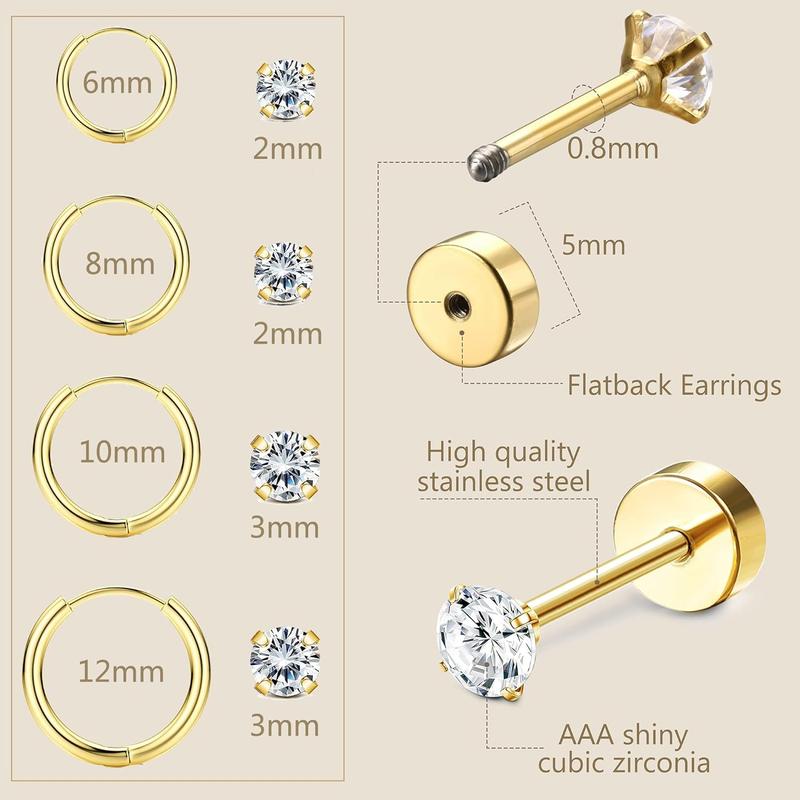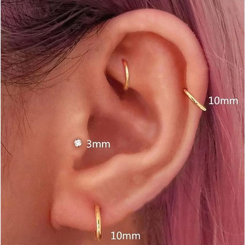 These earrings are hypoallergenic, ensuring no irritation from allergic metals. They feature screw-backs for easy removal. Ideal for cartilage and helix piercings. Choose from various sizes and styles.