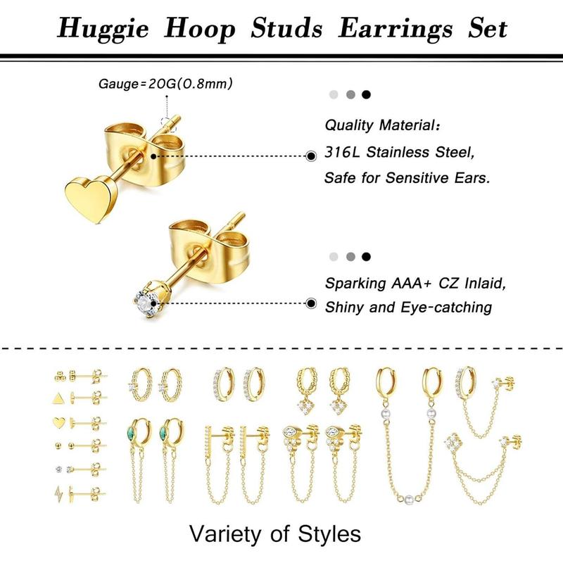 14k gold stud earrings One pack of the multiple earrings set for women comes with 27pcs chain stud earrings hoop, including 6 pairs cartilage stud earrings, 3 pairs mini gold hoops, 3 pairs dangle chain earrings, 3 pcs single chain earrings for double piercing. With rich, stylish patterns and colors, you'll always have the perfect line to match your outfit for any occasion. ——Various Styles