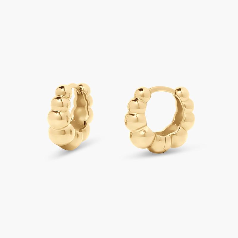 Get ready to hug it out with our Vale Gold Vermeil Huggies! These gold hoops will hug your ears in style, adding a touch of shine to any outfit. Say goodbye to boring earrings and hello to a puffy and playful look. Make a statement without saying a word.
