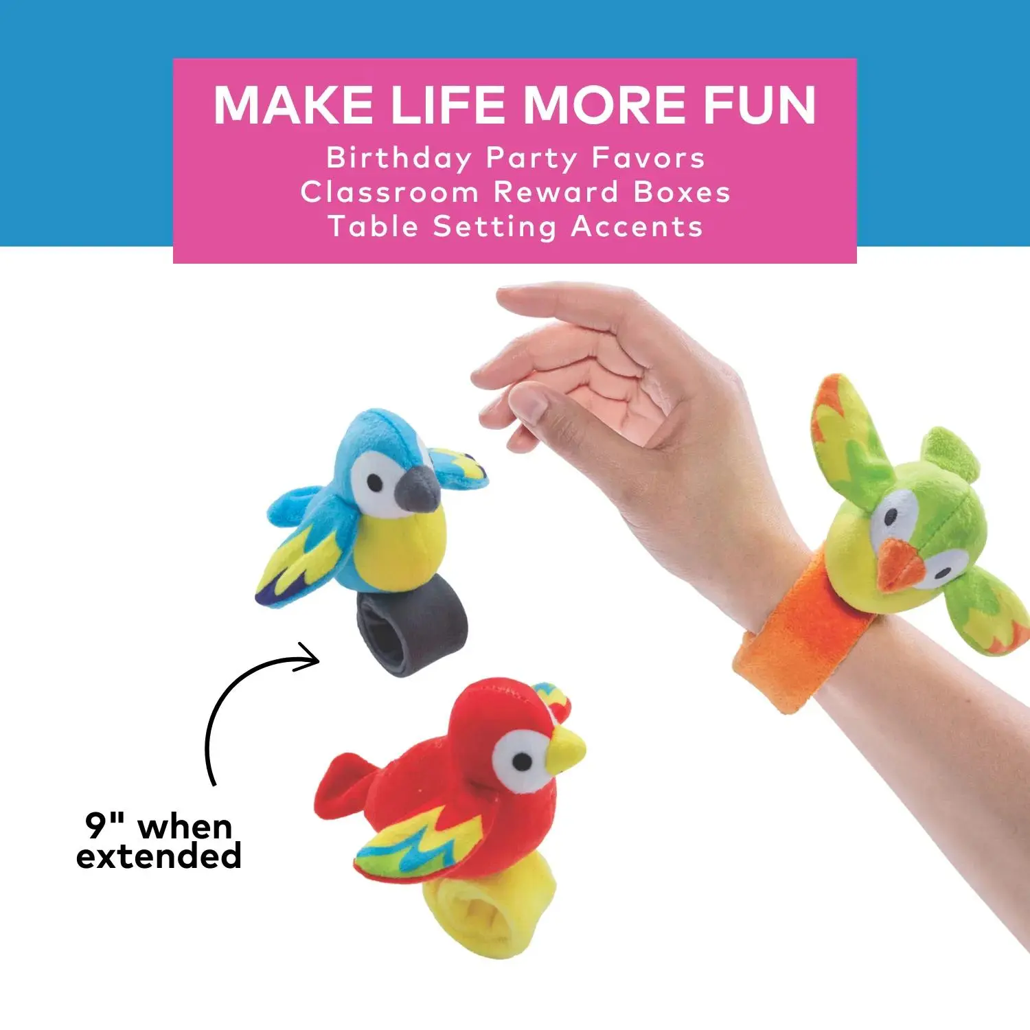 These adorable birds sure like to hang around! These bracelets make a unique birthday party favor for kids or classroom rewards that will get snatched up quickly out of the rewards box! Kids will love wearing these colorful birds and since these birds are attached to slap bracelets they’re far less likely to get lost. Polly want a bracelet? Includes bendable metal band arms. Plush. 9" © OTC